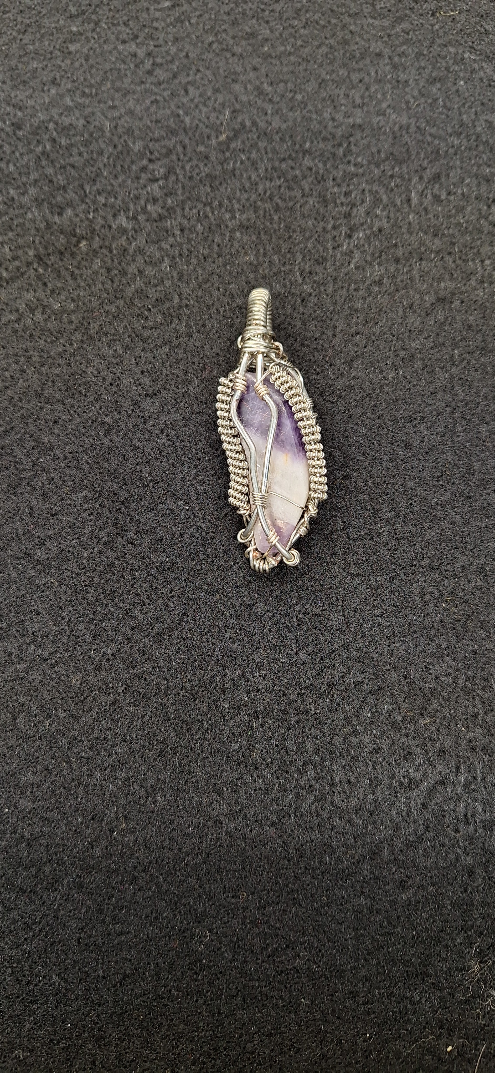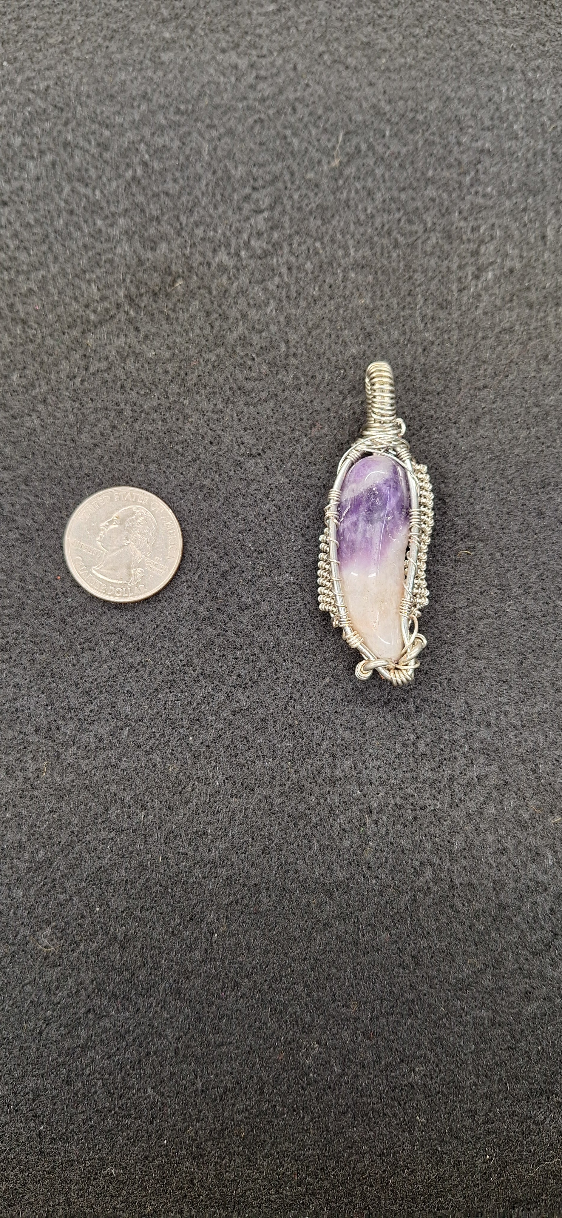 Chevron amethyst pendant. Wrapped with coated copper zebra wire.