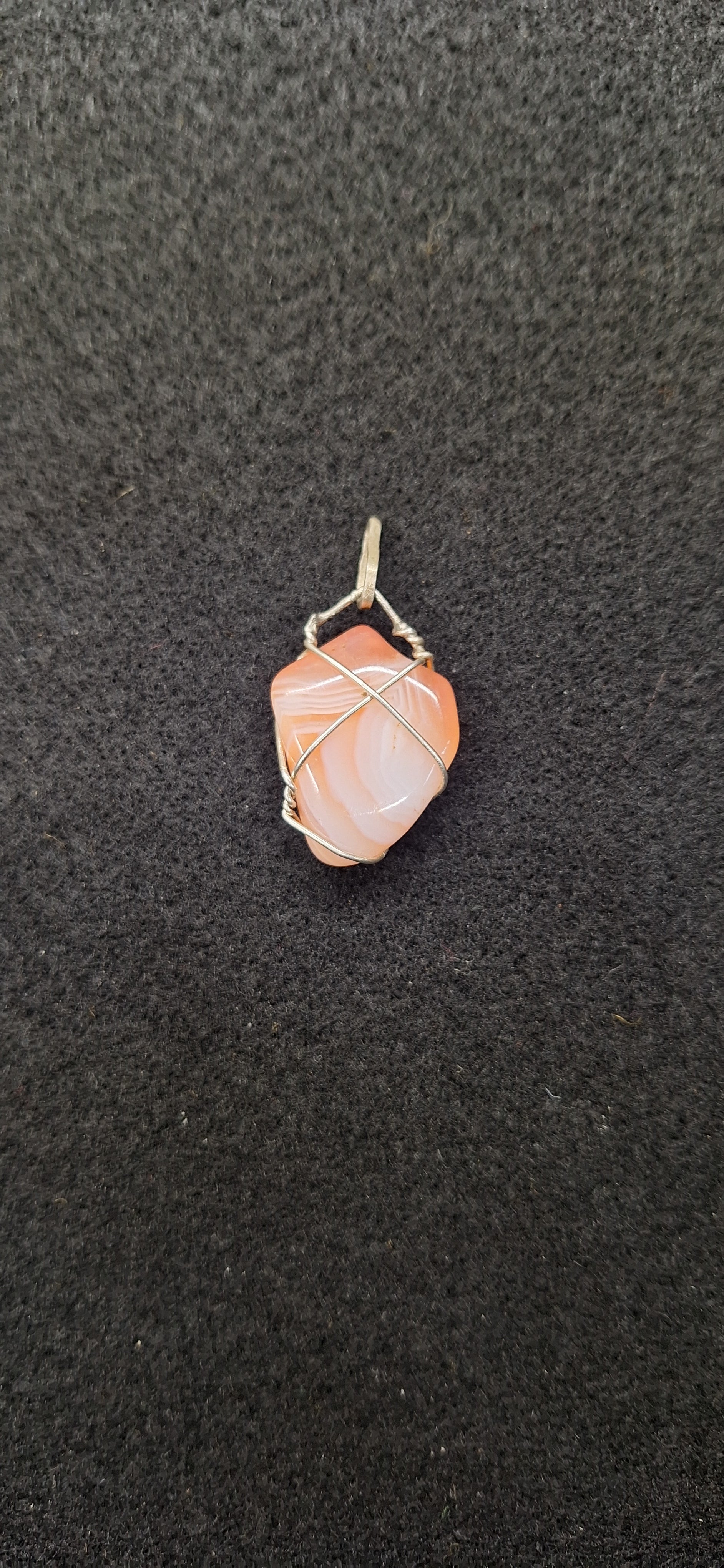 Peach botswana agate soldered sterling silver pendant. The agate is tumbled.